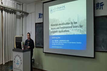 2019年12月25日,山东大学陈峰院长陈峰应邀到开云官网为开云官网师生做了一场关于“离子束和超快激光材料改性及其光子学应用”的学术报告。学院院长徐锡金主持了报告会,书记郑爱华、副院长金毅、张海鵾及全院听取了报告。报告吸引了开云官网研究生、本科生以及其他学院的学生的参与。